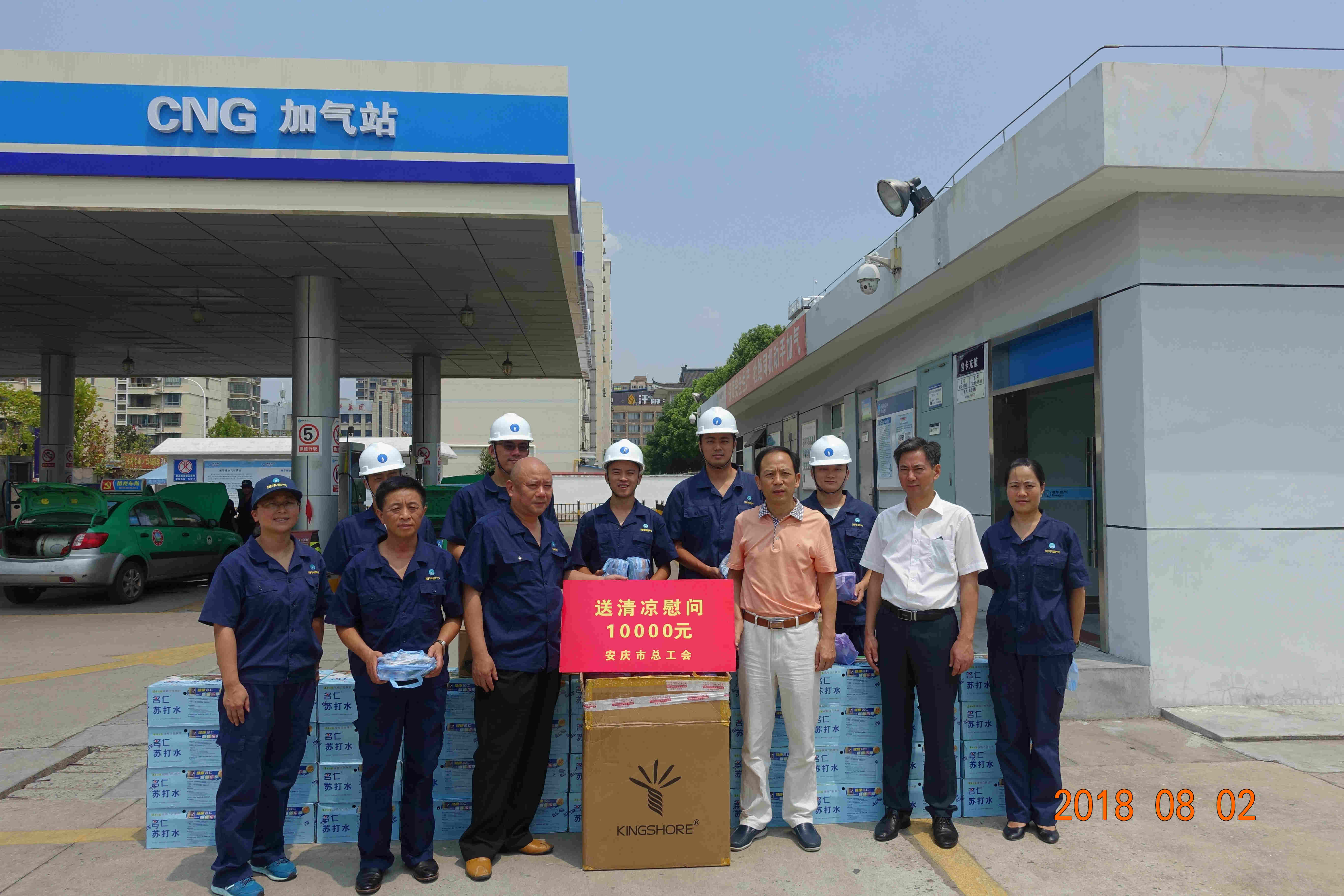 8月2日上午,市總工會(huì)副主席幸敬穩(wěn)一行冒著酷暑來(lái)到港華路加氣站開(kāi)展高溫送清涼慰問(wèn)活動(dòng),為奮戰(zhàn)在高溫作業(yè)一線的燃?xì)饴毠に腿ハ娜贞P(guān)懷。安慶港華常務(wù)副總楊善俊、工會(huì)主席孫曉偉參加慰問(wèn)活動(dòng)。