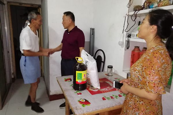 在社區(qū)工作人員陪同下,何族興來到社區(qū)獨居老黨員田國英家走訪慰問,與老人親切交談,關(guān)切詢問他的身體和生活狀況,查看他家燃?xì)庠O(shè)施安全狀況,并叮囑他高溫季節(jié)注意防暑,有困難及時聯(lián)系。隨后,何族興一行還來到全國最美家庭倪明華家,詢問家中生活近況,并送上糧油等生活慰問品。