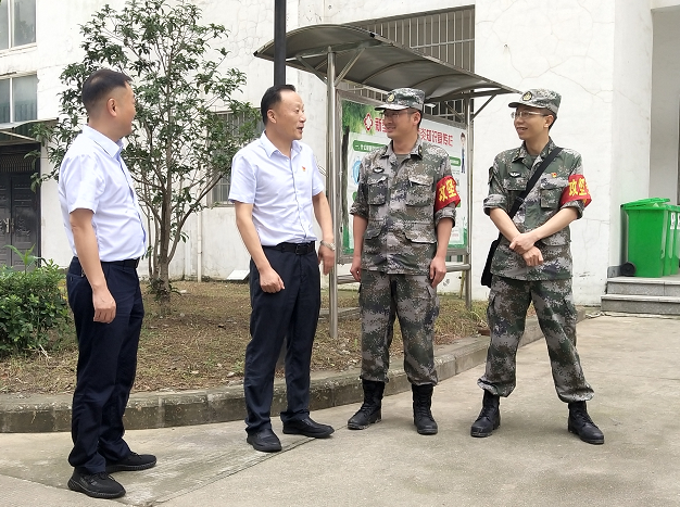 在部隊駐扎地安職院,何族興一行詳細了解了部隊官兵的駐地環(huán)境、食宿安排等方面情況,并送去換洗衣物、飲用水、防蚊及防暑用品等價值近3萬元的生活物資。