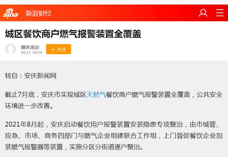 城區(qū)餐飲商戶燃?xì)鈭缶b置全覆蓋(轉(zhuǎn)載于新浪財經(jīng)) 發(fā)布時間:2022-08-12    閱讀次數(shù):9528次