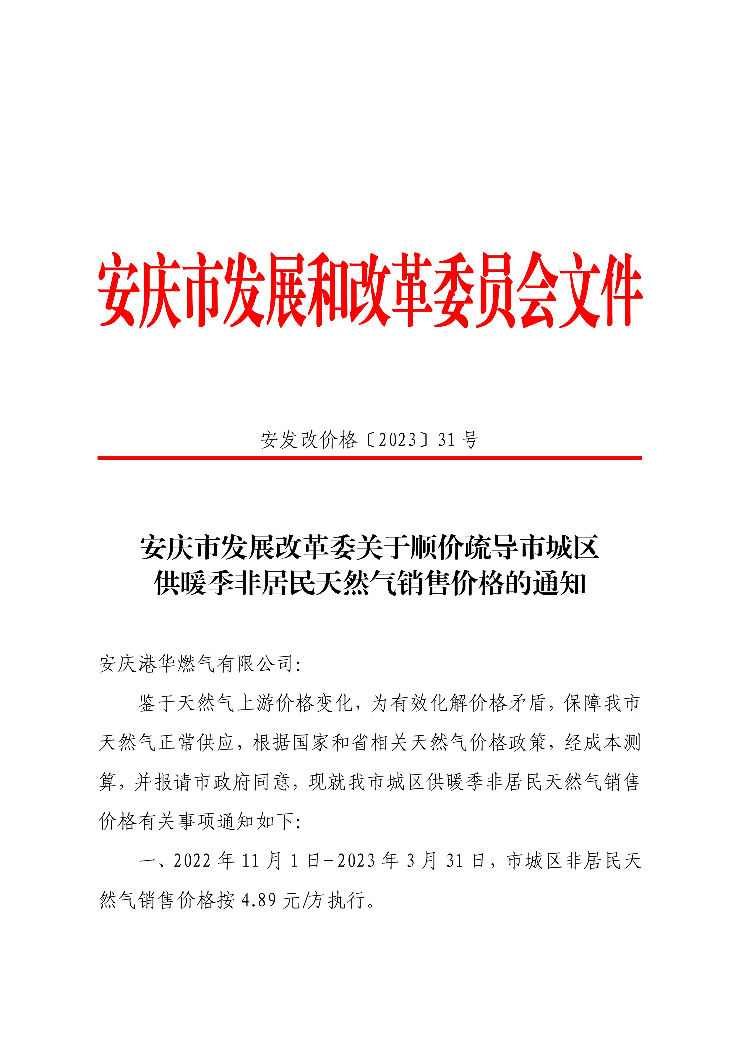 關(guān)于順價(jià)疏導(dǎo)市城區(qū)供暖季非居民天然氣銷(xiāo)售價(jià)格的通知