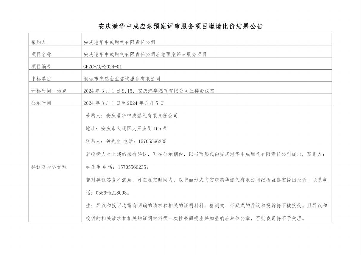 安慶港華中成應急預案評審服務項目邀請比價結(jié)果公告