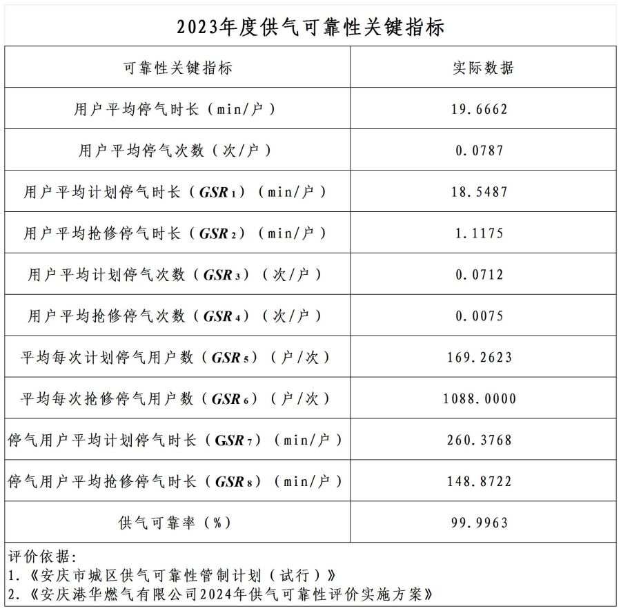 2023年供氣可靠性關(guān)鍵指標(biāo)