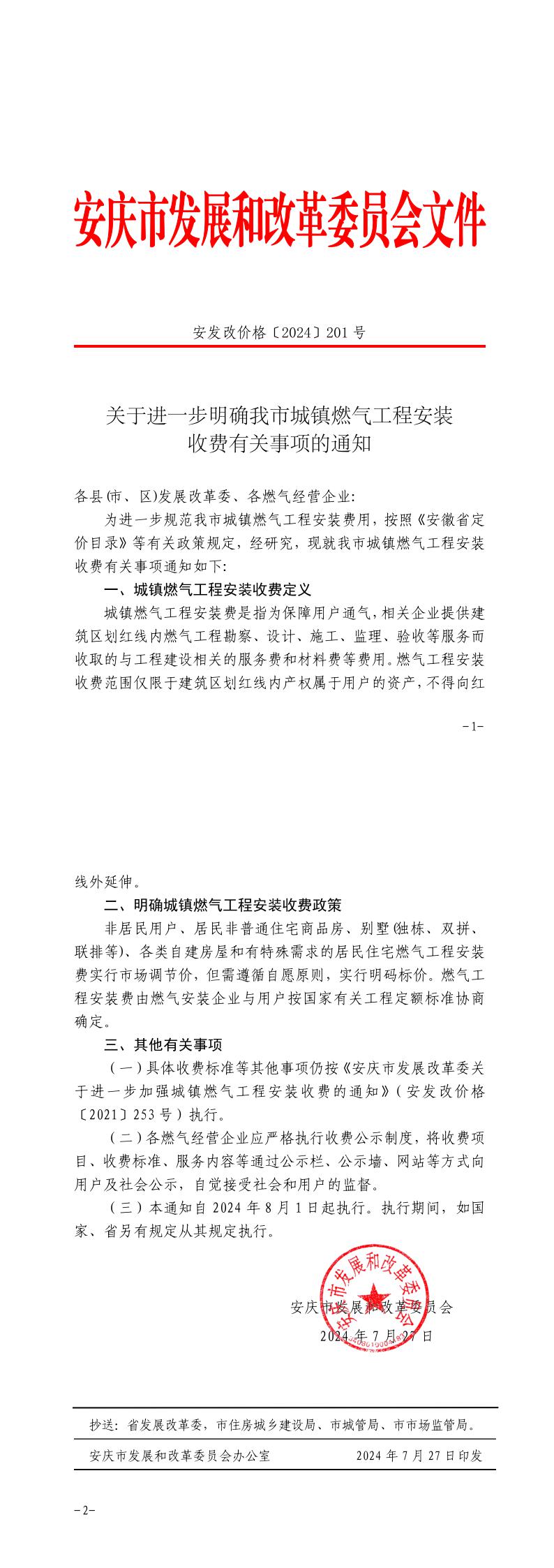 關(guān)于進一步明確我市城鎮(zhèn)燃?xì)夤こ贪惭b收費有關(guān)事項的通知
