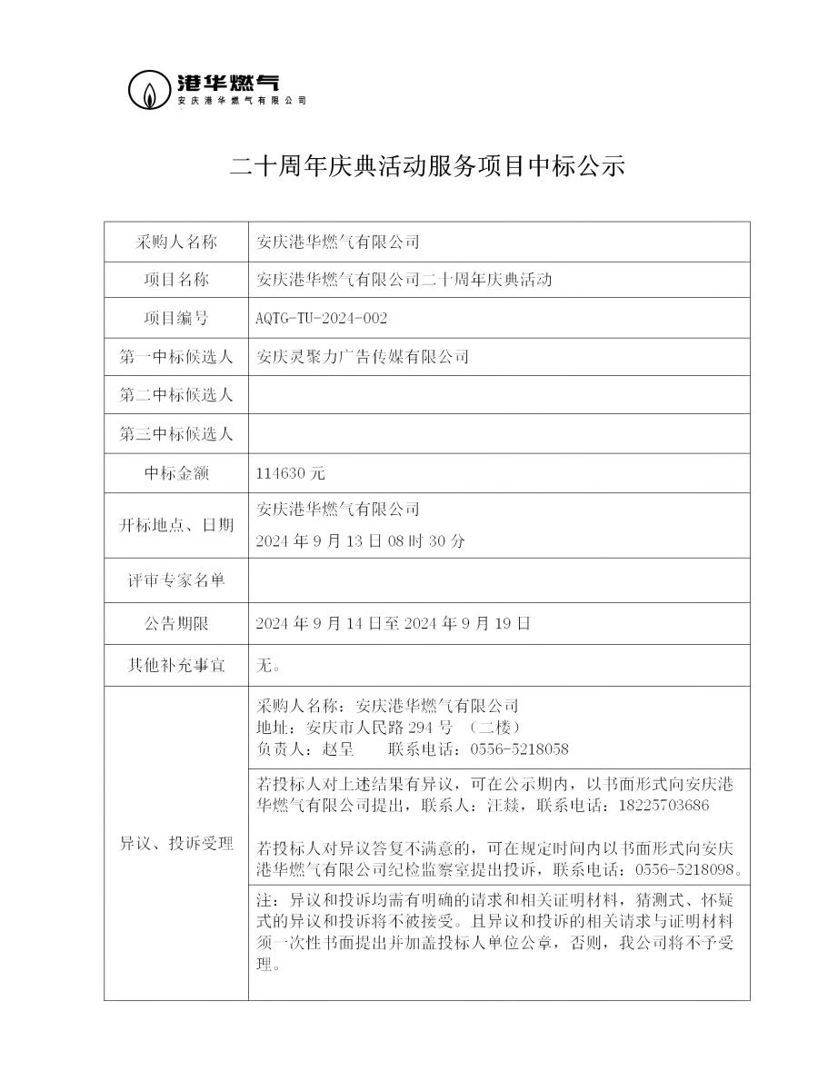 二十周年慶典活動(dòng)服務(wù)項(xiàng)目中標(biāo)公示