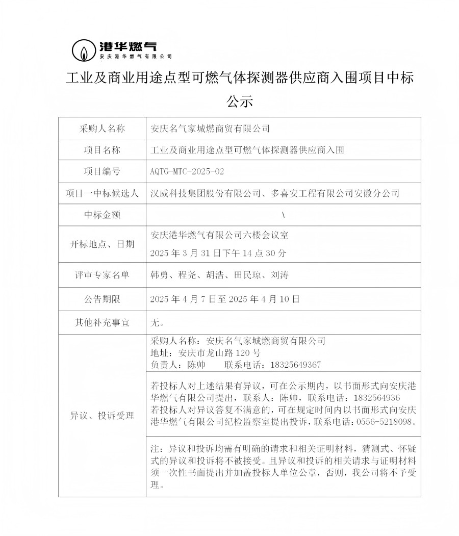 工業(yè)及商業(yè)用途點(diǎn)型可燃?xì)怏w探測(cè)器供應(yīng)商入圍項(xiàng)目中標(biāo)公示 發(fā)布時(shí)間:2025-04-07    閱讀次數(shù):1855次