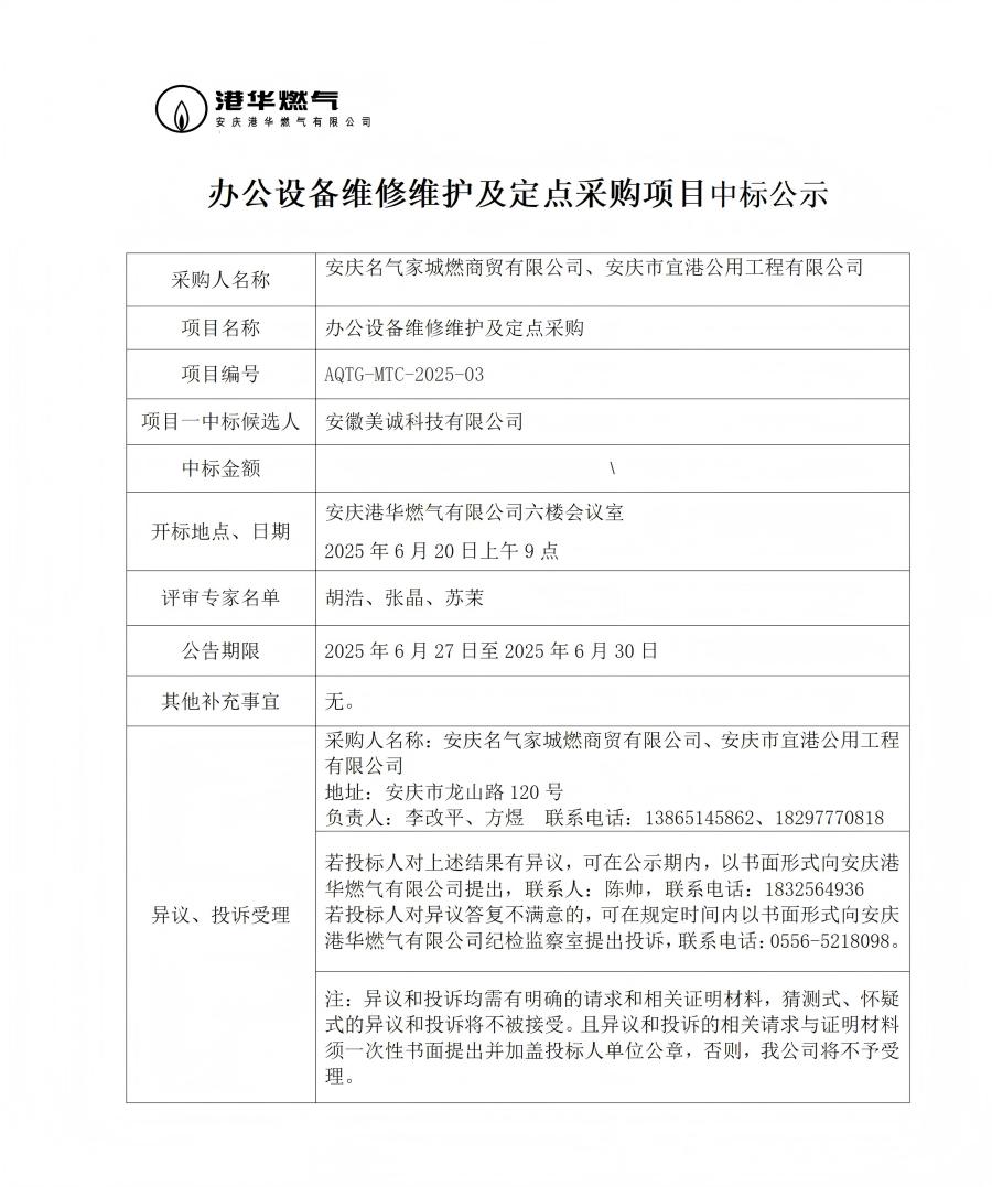 辦公設(shè)備維修維護及定點采購項目中標(biāo)公示