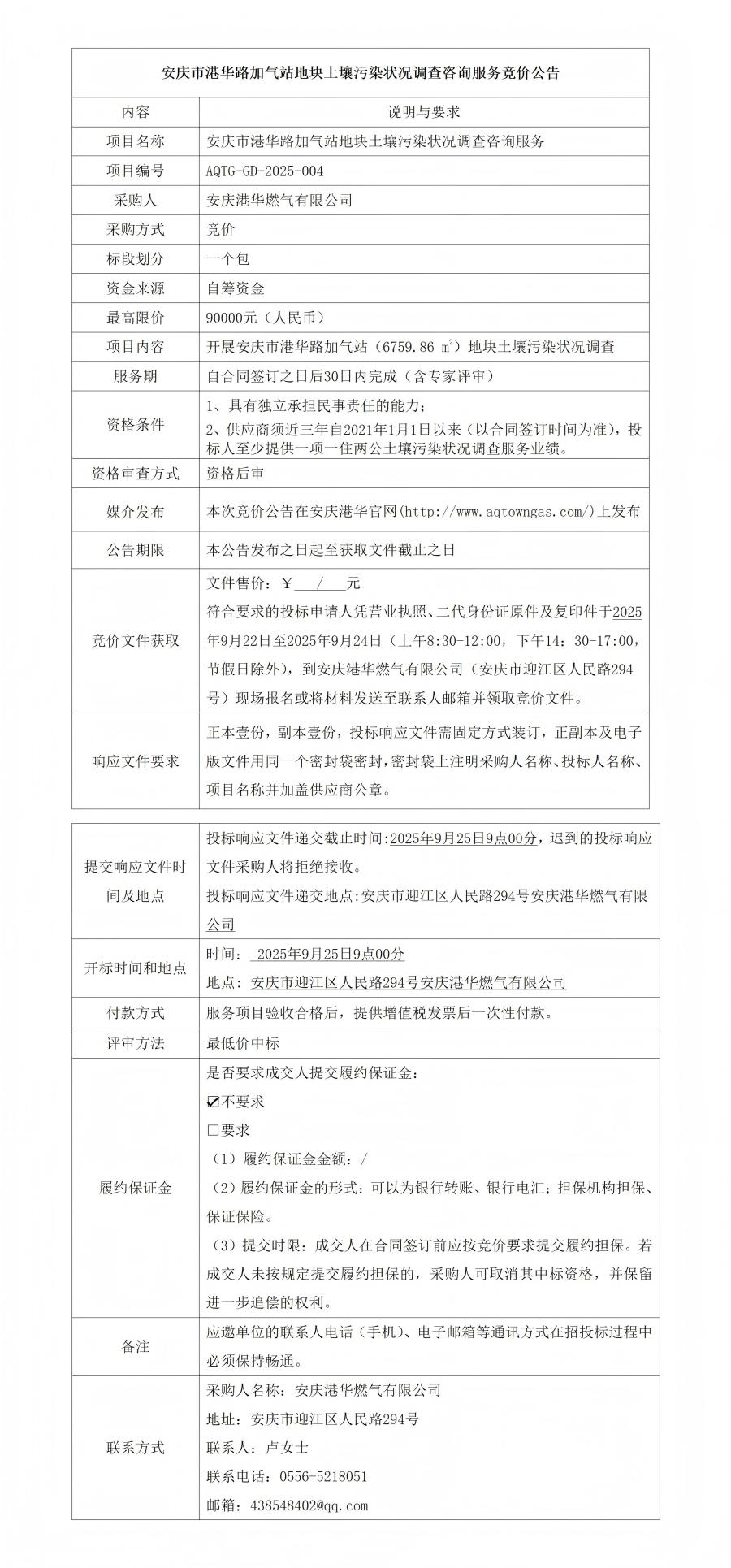 安慶市港華路加氣站地塊土壤污染狀況調(diào)查咨詢服務(wù)競(jìng)價(jià)公告