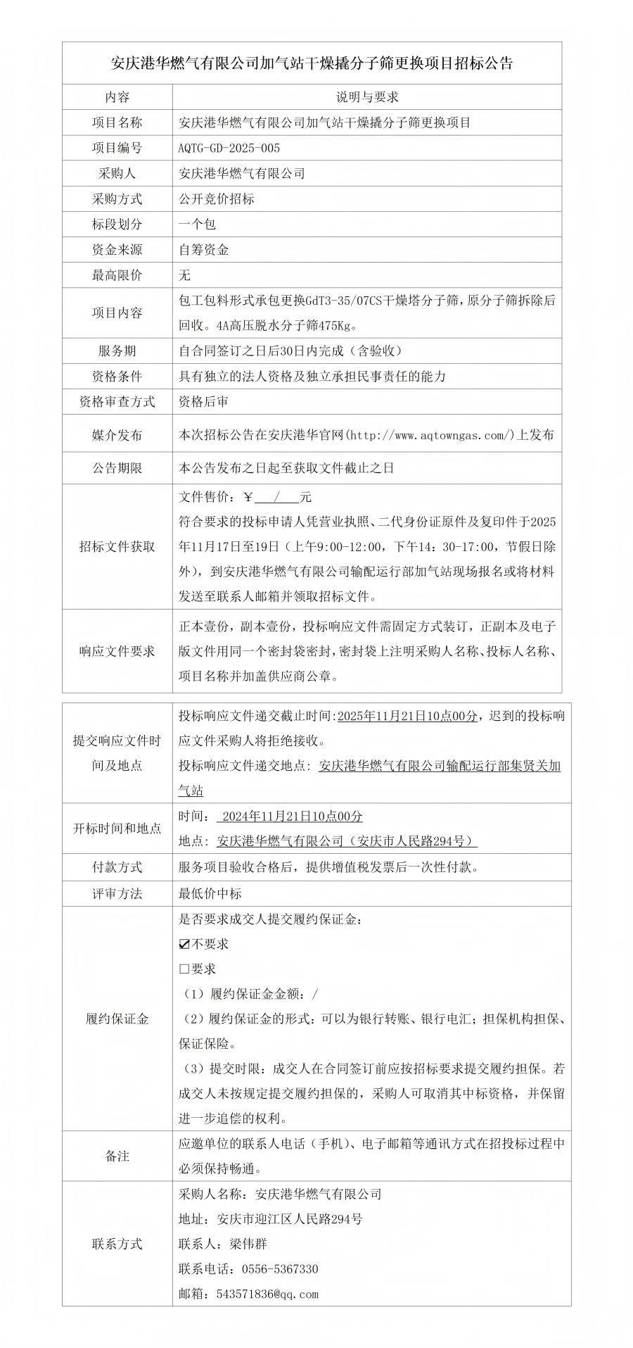安慶港華燃?xì)庥邢薰炯託庹靖稍锴朔肿雍Y更換項(xiàng)目招標(biāo)公告 發(fā)布時(shí)間:2025-11-17    閱讀次數(shù):753次