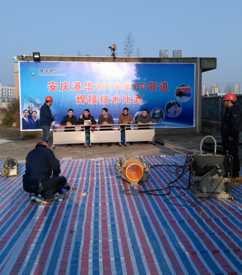 培訓(xùn)通過案例分析等方式詳細講解了焊接法律法規(guī)、PE管生產(chǎn)工藝、焊接技術(shù)及注意事項,并就焊接關(guān)鍵點進行了集體探討。為保證比武活動順利有序開展,現(xiàn)場還成立了由公司總經(jīng)理王政文、運行副總楊善俊、工程副總裴曉斌及相關(guān)專家組成的評委組。評委組通過抽簽的方式隨機確定各參賽人員的具體參賽項目(熱熔和電熔兩種焊接方式),并從焊接質(zhì)量、作業(yè)時間等多個方面對所有選手進行綜合評判、打分與裁定。